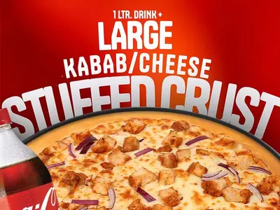Kebab/Cheese stuffed crust in your favourite Pizza Flavor with 1 Ltr. Soft