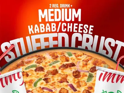 Kebab/Cheese stuffed crust in your favourite Pizza Flavor with 2 Regular S