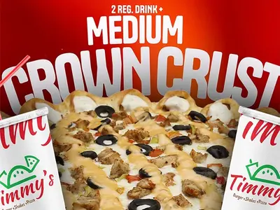 1 Medium Classic Pizza + 6 pcs Wings + 2 Small Drinks.